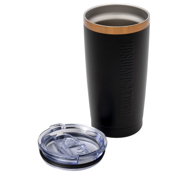 The Harley - Davidson Embossed travel mug features a vacuum insulated plastic lid with a spill prevention slide lock. The mug is made from stainless steel which is embossed with the Harley - Davidson logo. Capacity: 20 oz. / 600 ml Care: Hand wash only Do not microwave