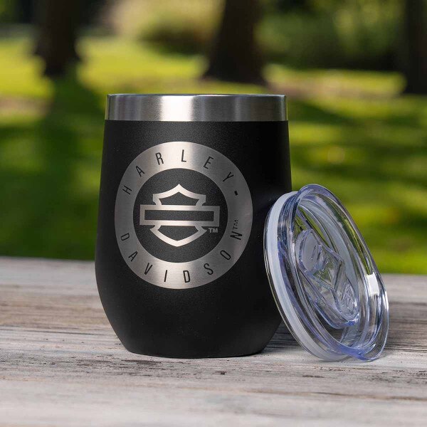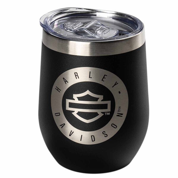 Pinit Open B&S Stainless Wine Tumbler - HDX-98676(0)No Reviews yet PART #: HDX-98676 Suggested Retail Price: €39.95Note: Available thru your local Harley-Davidson Dealer! €39,95 Quantity discounts available QuantityPrice This item is IN STOCKCurrent Stock: 76 Quantity -+ Details 15 oz. / 450 ml double-wall (vacuum insulated) stainless steel stemless wine tumbler with plastic lid. Semi-matte black finish with laser engraved Ope... Details Back Details15 oz. / 450 ml double-wall (vacuum insulated) stainless steel stemless wine tumbler with plastic lid. Semi-matte black finish with laser engraved Open Bar & Shield logo. Hand wash only. Do not microwave. Reviews 0 Back Ratings & ReviewsNo reviews availableBe the first to Write a Review