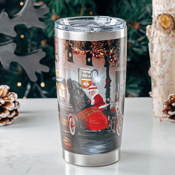 WINTER 2025 Pinit Biker Santa Travel Mug - HDX-98692(0)No Reviews yet PART #: HDX-98692 Suggested Retail Price: €49.95Note: Available thru your local Harley-Davidson Dealer! €59,95 Quantity discounts available QuantityPrice This item is IN STOCKCurrent Stock: 2 Quantity -+ Details 20 oz. / 600 ml double-wall (vacuum insulated) stainless steel travel mug. Full wrap Biker Santa scene. Keeps hot drinks hot for up to 4 hours and col... Details Back Details20 oz. / 600 ml double-wall (vacuum insulated) stainless steel travel mug. Full wrap Biker Santa scene. Keeps hot drinks hot for up to 4 hours and cold drinks cold for up to 12 hours. Hand wash only. Do not microwave.*DEALERS ORDER IN MULTIPLES OF 6* Reviews 0 Back Ratings & ReviewsNo reviews availableBe the first to Write a Review